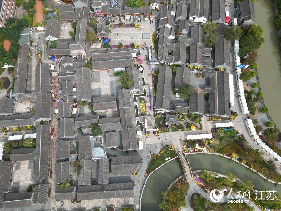 航拍唐闸古镇。人民网记者 王继亮摄人民网南通11月4日电 (记者王继亮)株株菊花清新脱俗,各色盆景匠心独具。11月2日,江苏南通崇川区“唐闸花事 邂逅菊艺”花卉市集在当地唐闸古镇北市景区开幕,活动为期一个月,分为花田市集、花间雅集、花间食光三大功能区,可为市民游客提供可逛、可玩、可购的沉浸式体验。