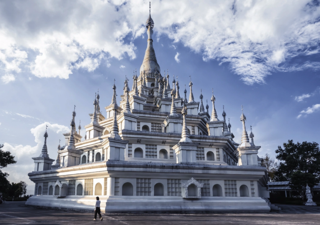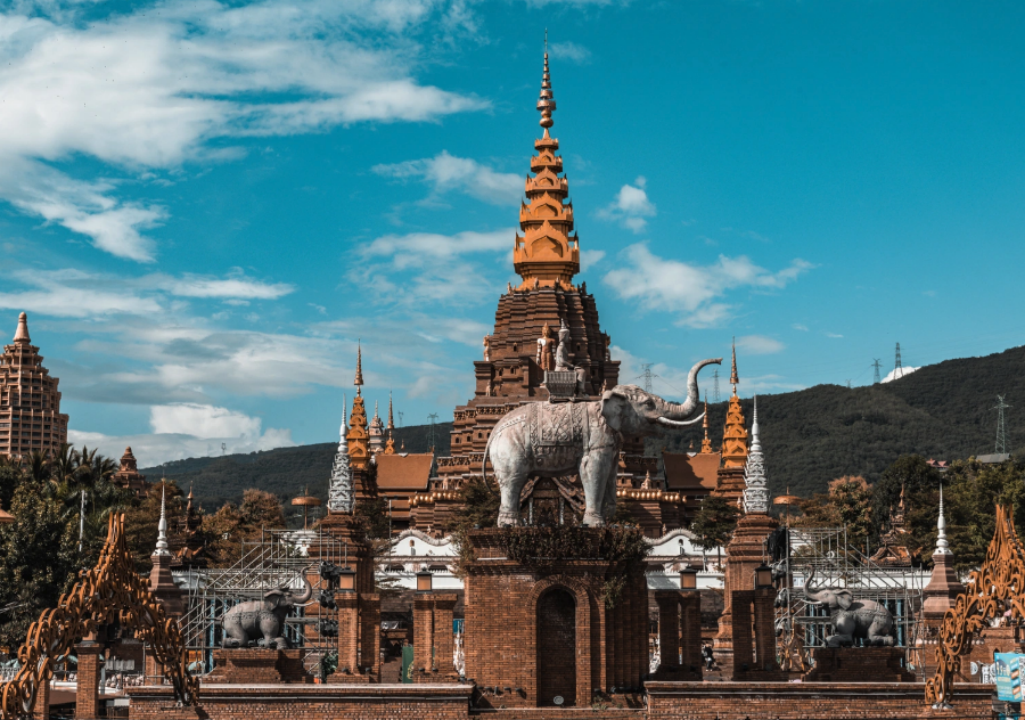 值得一提的是,虽然文中提到的是大金塔,但如果你想寻找一座银白色的塔,那么勐焕银塔也是一个不错的选择。这座银塔位于附近的芒市,高达66米,以纯白色为主色调,象征着纯洁与高贵。塔身周围还有80个小塔环绕,构成了一个宏伟壮观的建筑群,非常适合摄影爱好者前来取景。