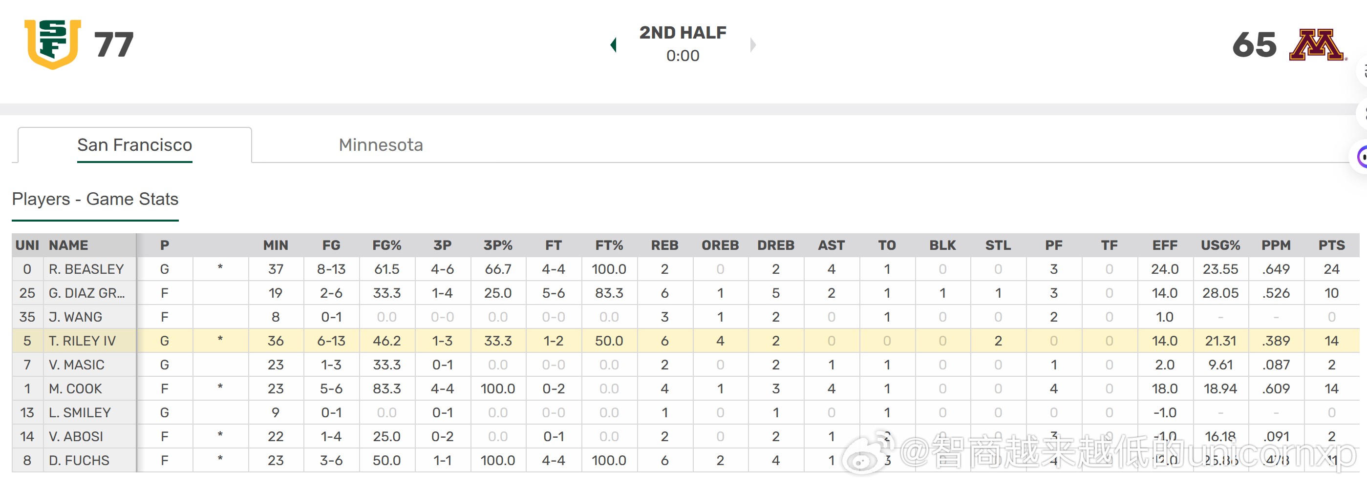 北京时间今日,在NCAA常规赛中,两位中国留洋球员王俊杰和赵维伦所效力的旧金山大学以77-65击败了明尼苏达大学。