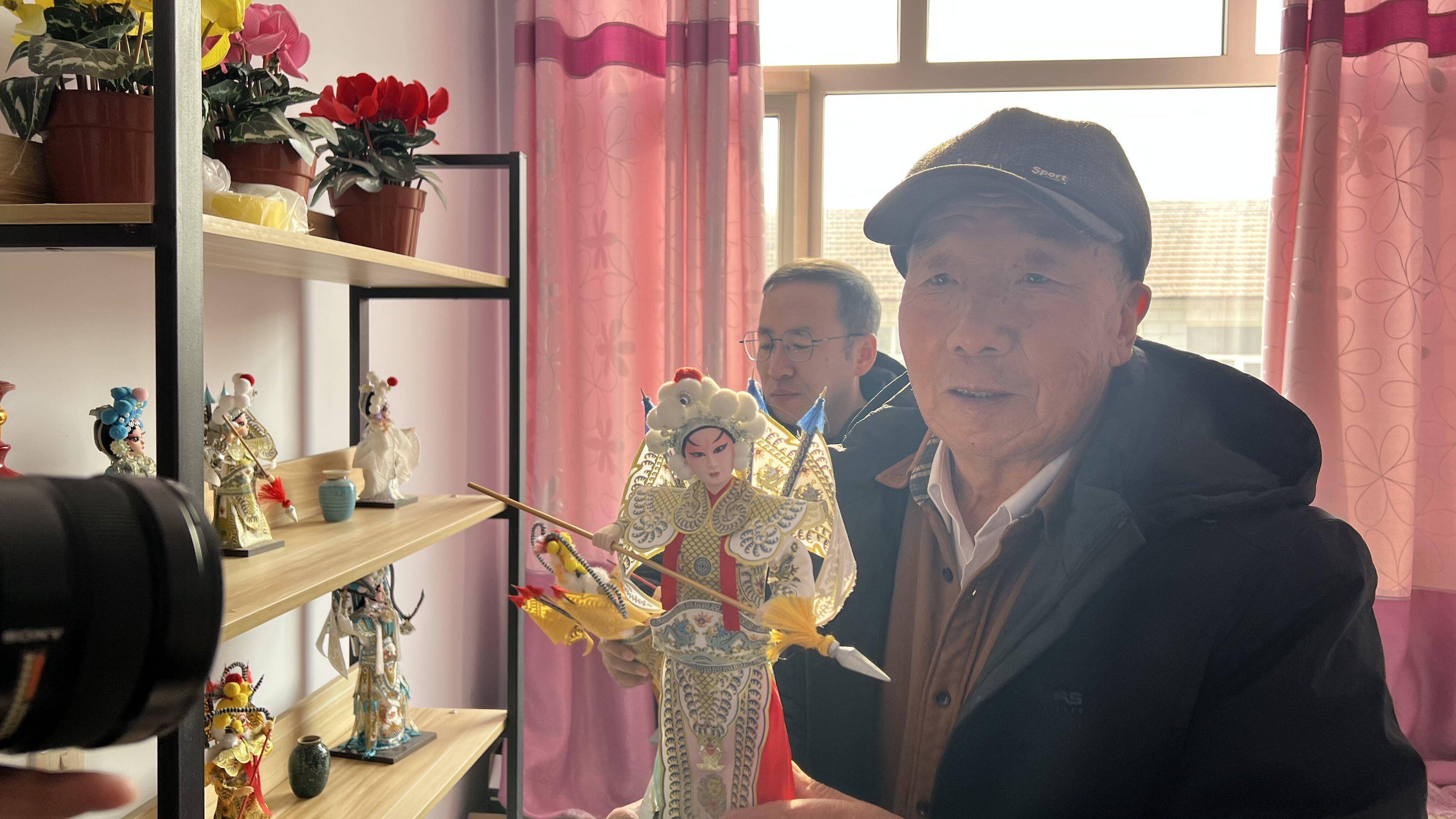 韩永祉讲解戏曲人物模型。张家口市委宣传部供图
