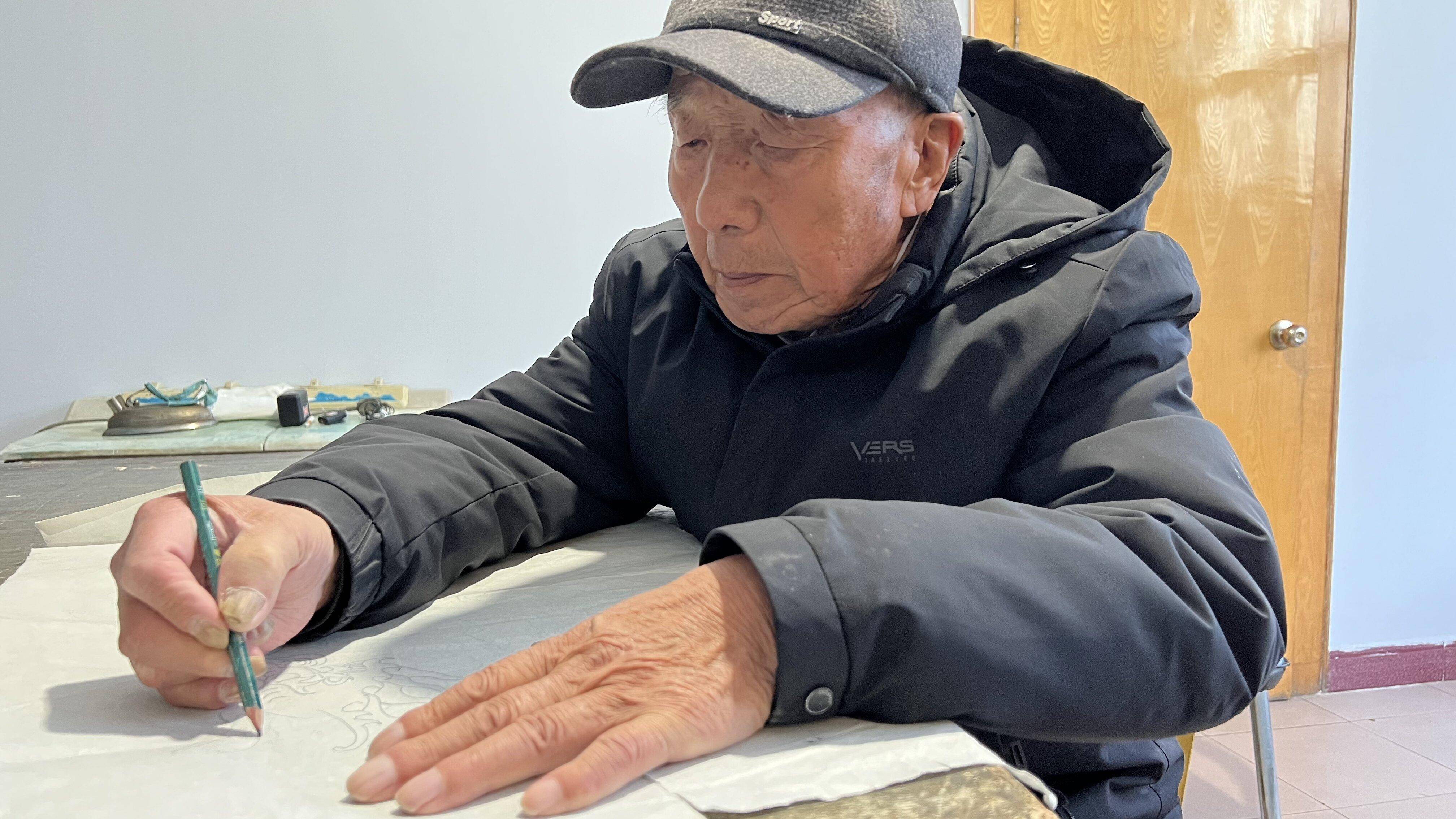 韩永祉正在设计戏服图稿。张家口市委宣传部供图